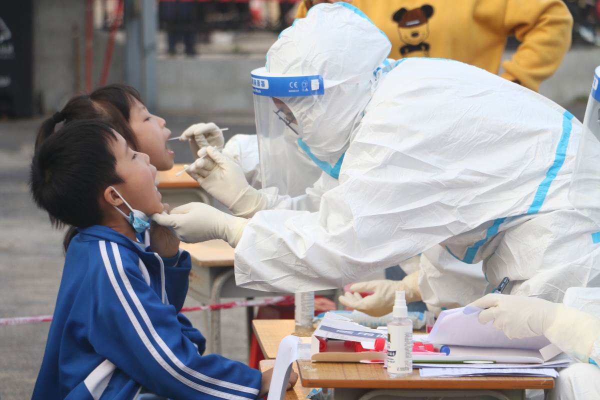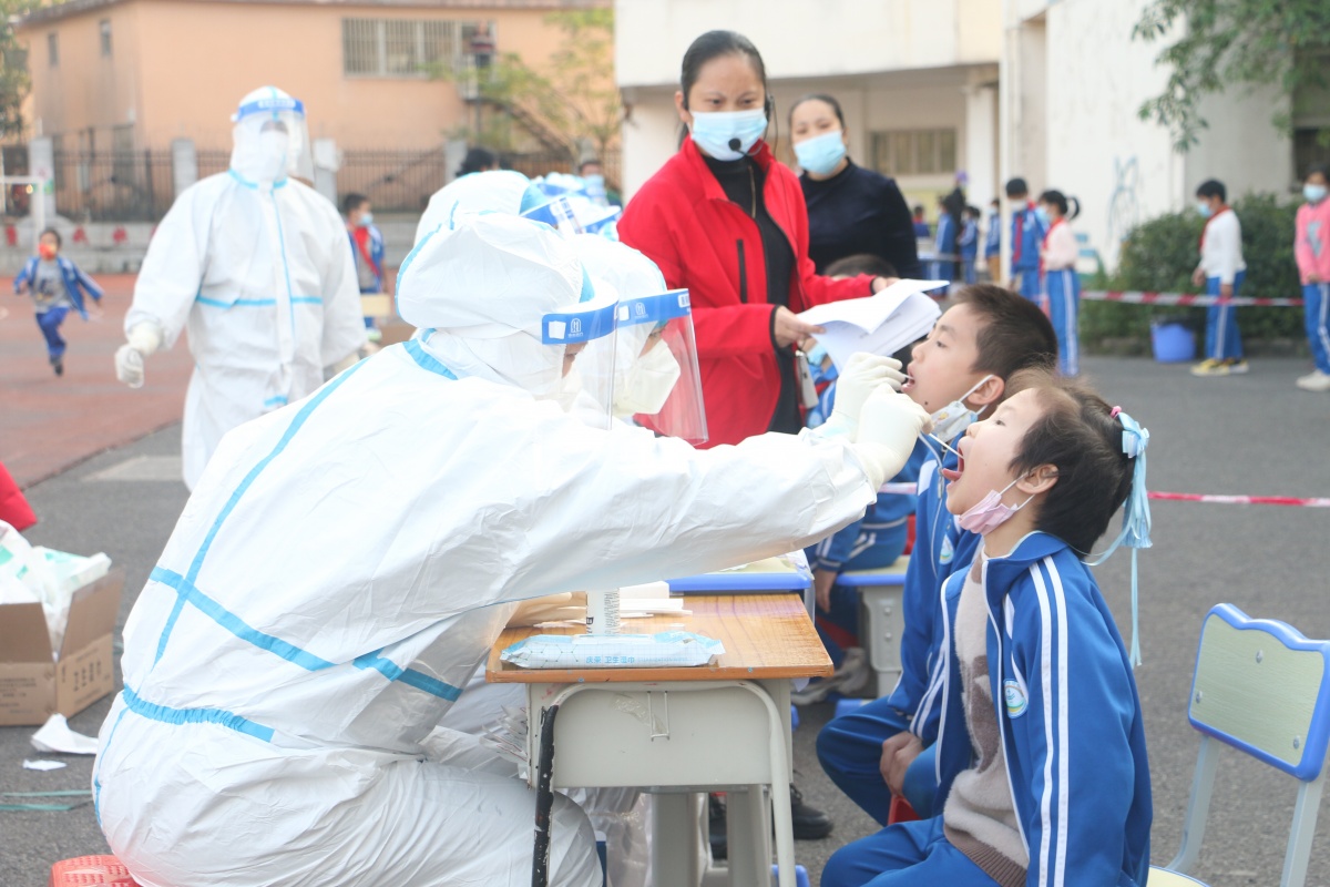 钦州市钦北区医疗队由30名医护人员组成,到达防城港市后第一时间来到金湾小学,细心地为学生们做核酸采样。经过1个多小时的努力,该医疗队完成了金湾小学1300 多名学生的核酸采样工作。“作为医护人员,有需要我们随时会上。我觉得,这是我们的责任和担当。”钦州市钦北区医疗队黄靖靖表示。