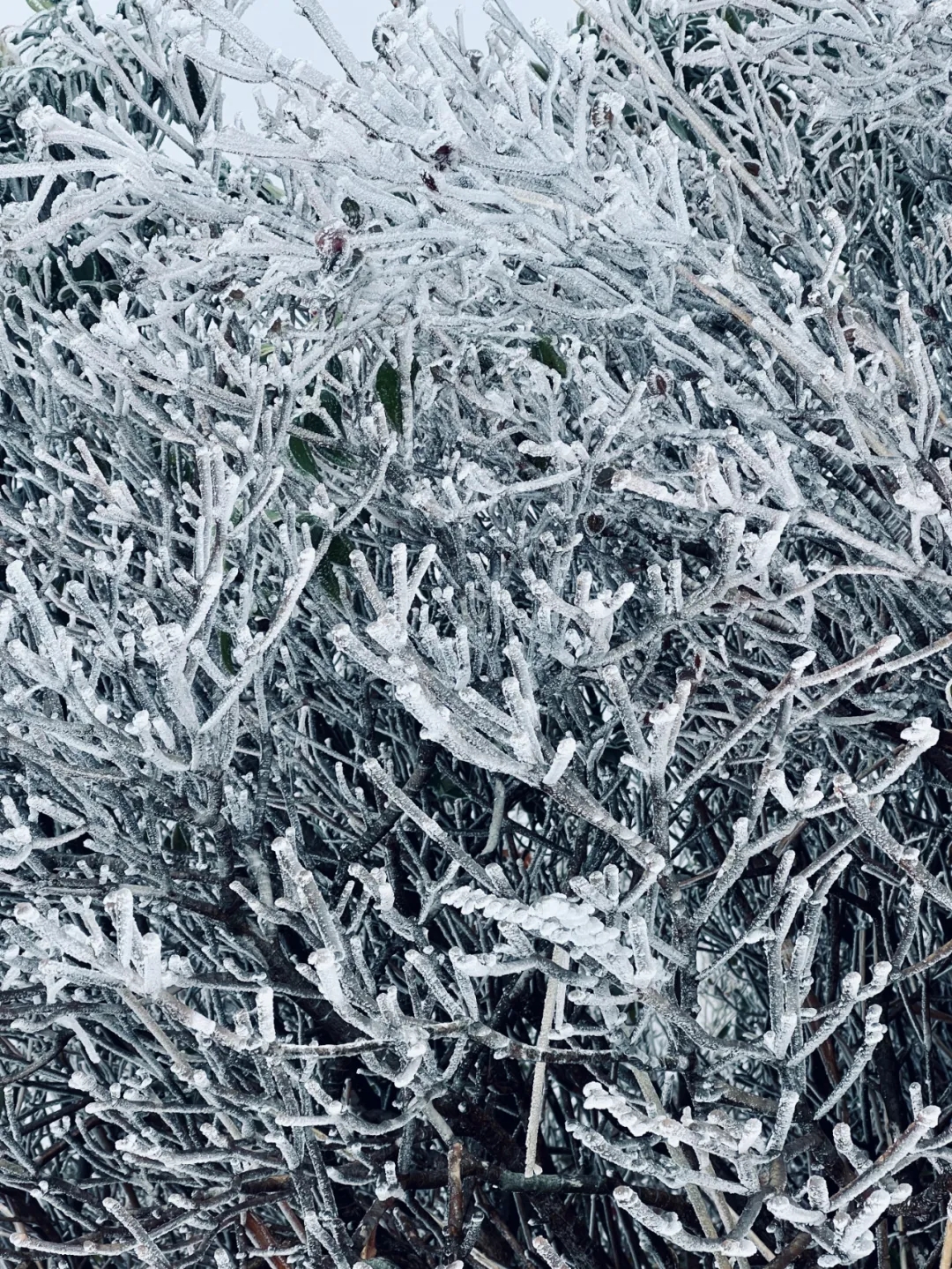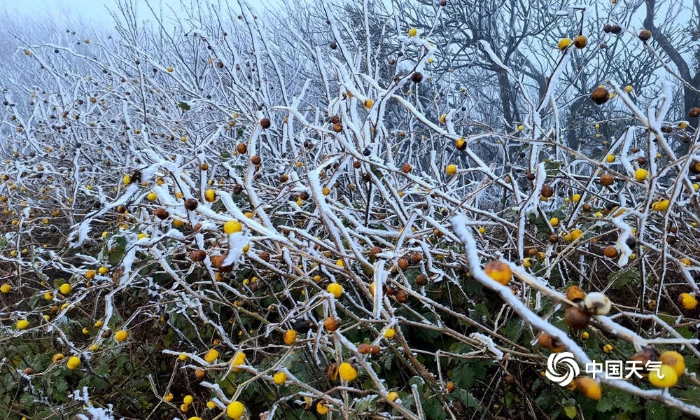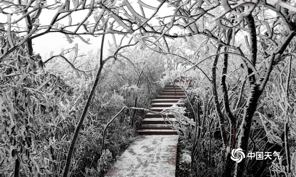 继26日柳州融水苗族自治县和桂林资源县下雪后,雾凇的朋友圈也开始扩大。