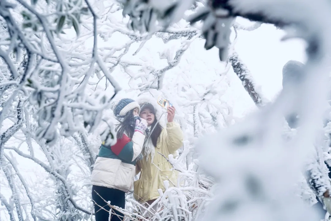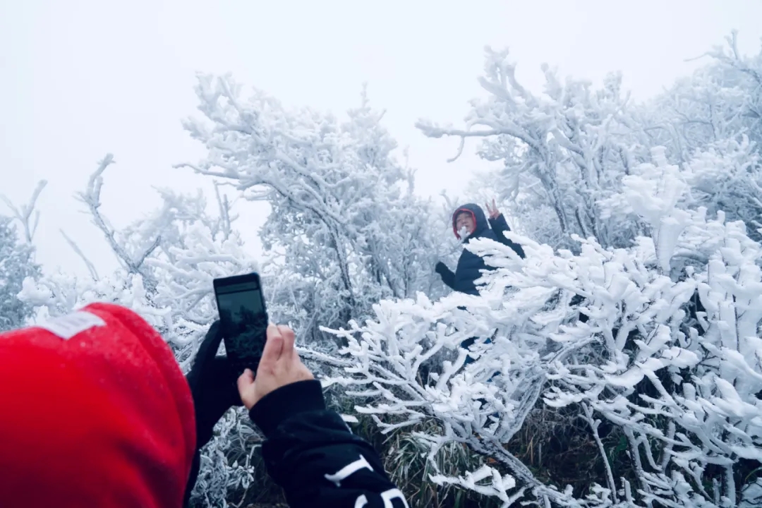 ▲12月27日,游客在南宁大明山拍照留念。南国早报客户端记者 苏华 摄
