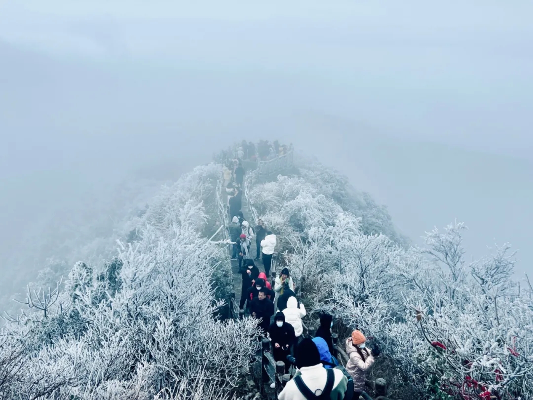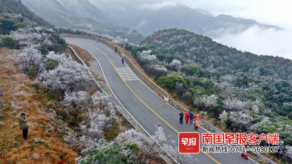 大明山“冰雪奇缘”吸引众多游客上山观赏。图片来源:广西新闻网记者 黄诗淇