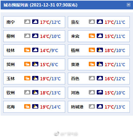 12月31日广西气象官方微博 12-31 09:46
