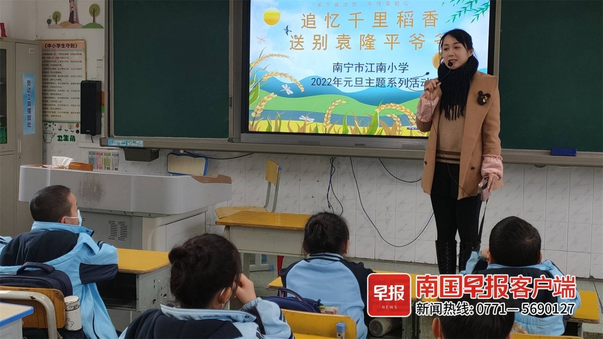 江南小学本部的元旦迎新活动以主题班会的形式进行,围绕“如果2021年是一堂课……”为主题展开,不同年级串联2021年大事件。例如一年级学生聊“新冠疫苗全民接种”;二年级学生开展民族团结主题活动;五年级分享水稻的故事追忆袁隆平等。学校希望,通过这样的主题活动,让学生铭记2021年的感动和力量,温暖迎接2022年。