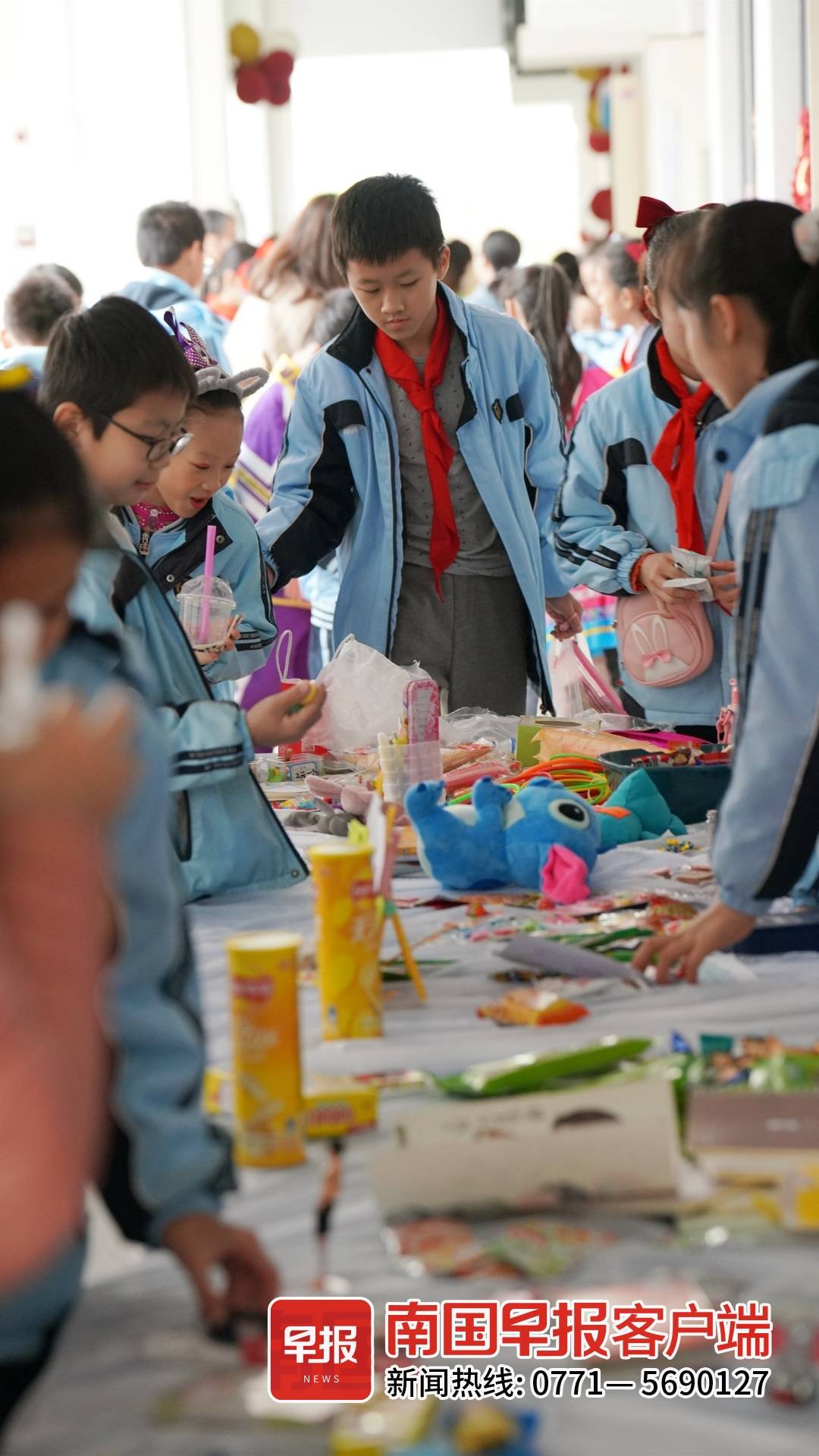 31日这天,南宁市月湾路小学师生也欢聚一堂,开展了迎新年庆元旦主题系列活动。除了文艺汇演和“追光少年”颁奖典礼,该校各班还开展了商品交易会。书籍、玩具、文具、生活用品、饰品、纪念品、工艺品、手工作品……各式商品让人目不暇接。