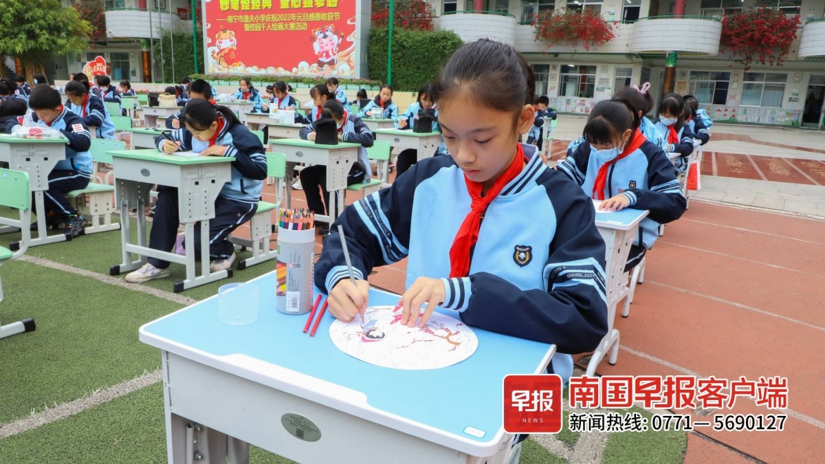 31日上午,南宁市逸夫小学举行庆祝2022年元旦感恩收获节暨校园千人绘画大赛,各年级根据奇妙的昆虫世界、照相机里的故事、中国国风团扇、中国手绘纸鸢、中国经典折页等不同主题开展绘画。