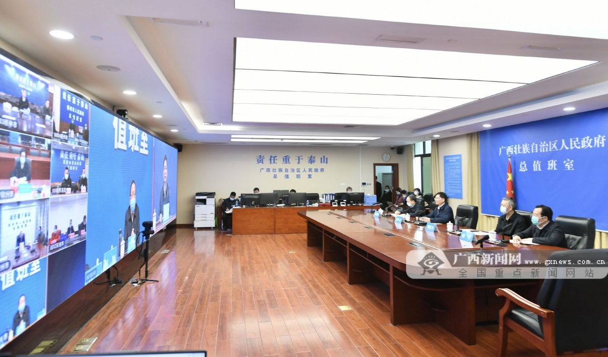 1月2日,元旦假期第二天,自治区主席蓝天立来到自治区政府总值班室,视频连线了解值班值守和疫情防控情况。记者 邓华 摄