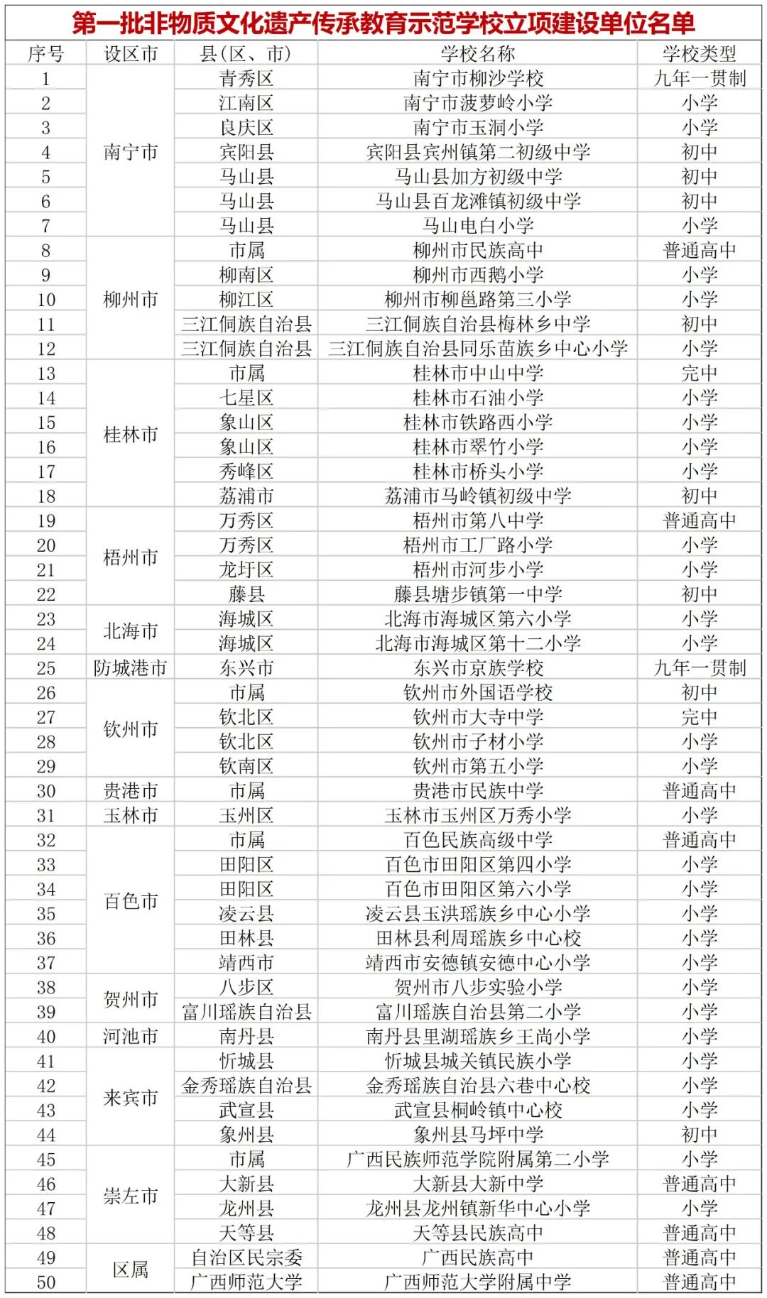 有你母校吗?广西公布第一批50所非遗传承教育示范学校