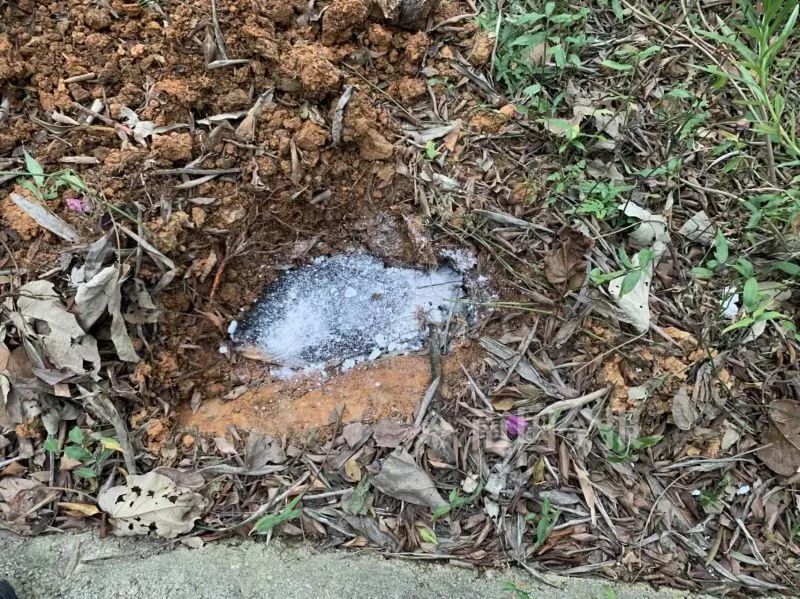 ▲该鱼已被工作人员进行了无害化填埋处理。