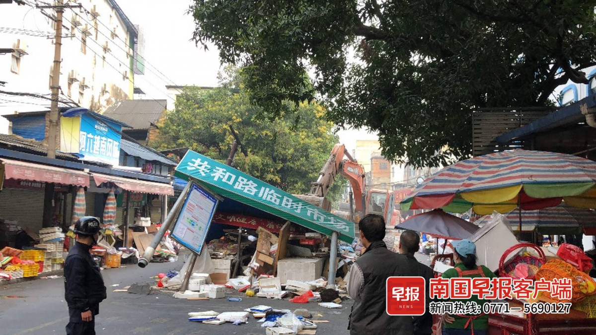 ▲共和路临时市场招牌倒下。南国早报客户端见习记者 游拥军 摄