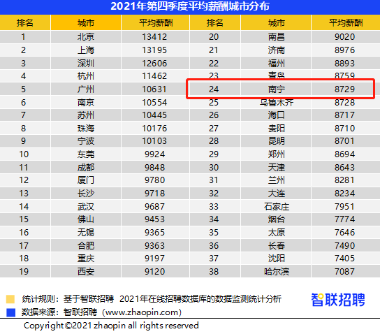 2021年第四季度南宁平均月薪8729元,你呢?