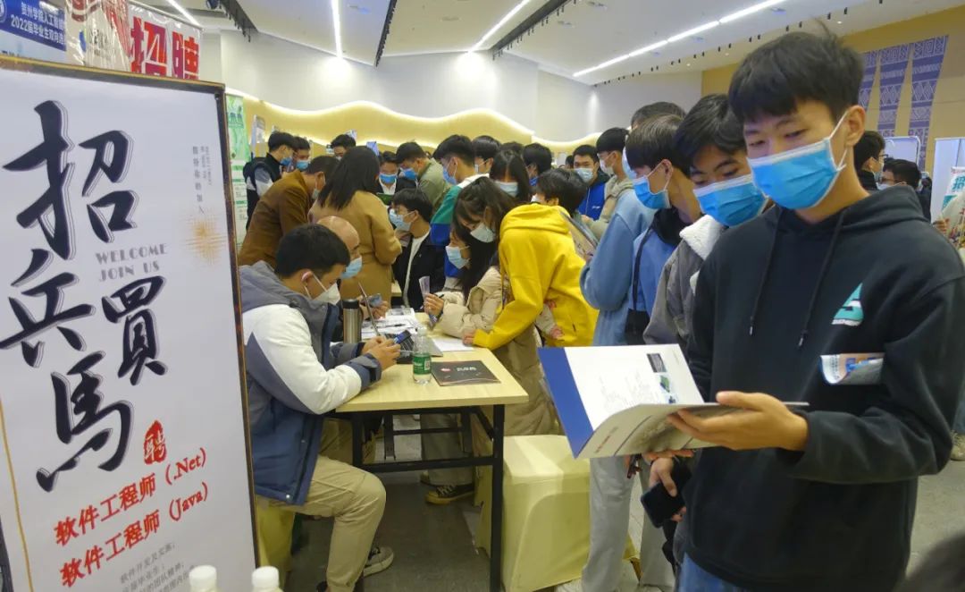 ▲2021年12月3日,贺州学院举行2022届毕业生就业双向选择洽谈会,多家企事业单位入校招聘,吸引了众多学生到场求职。廖祖平 摄