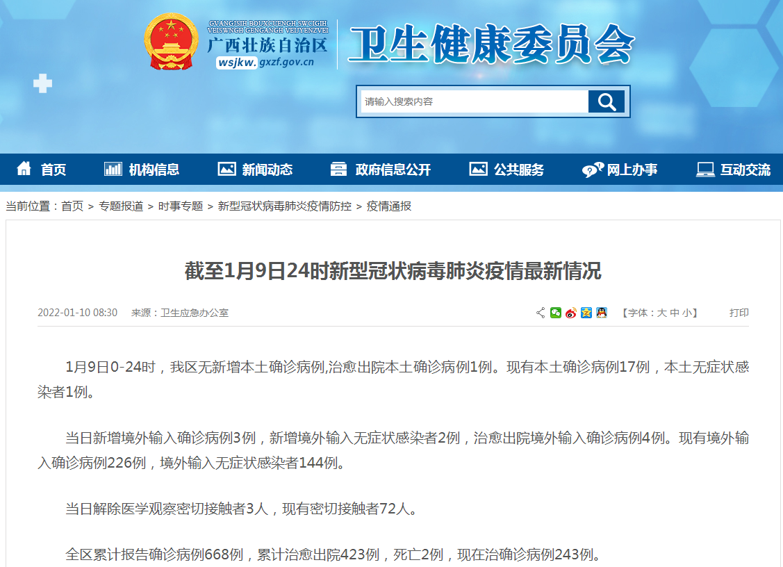 全区累计报告确诊病例668例,累计治愈出院423例,死亡2例,现在治确诊病例243例。
