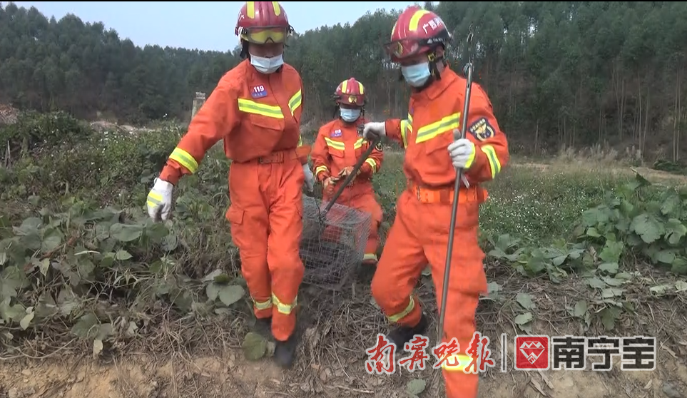 消防救援人员成功将蟒蛇抓获
