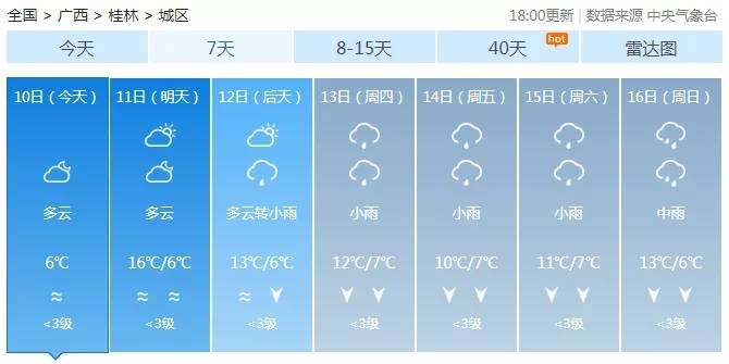 预计本周内(10日晚至-16日)先后接连有三股冷空气影响广西,低温+湿冷将成为本周天气之“星”。