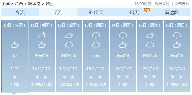 广西气象台10日17时发布预报: