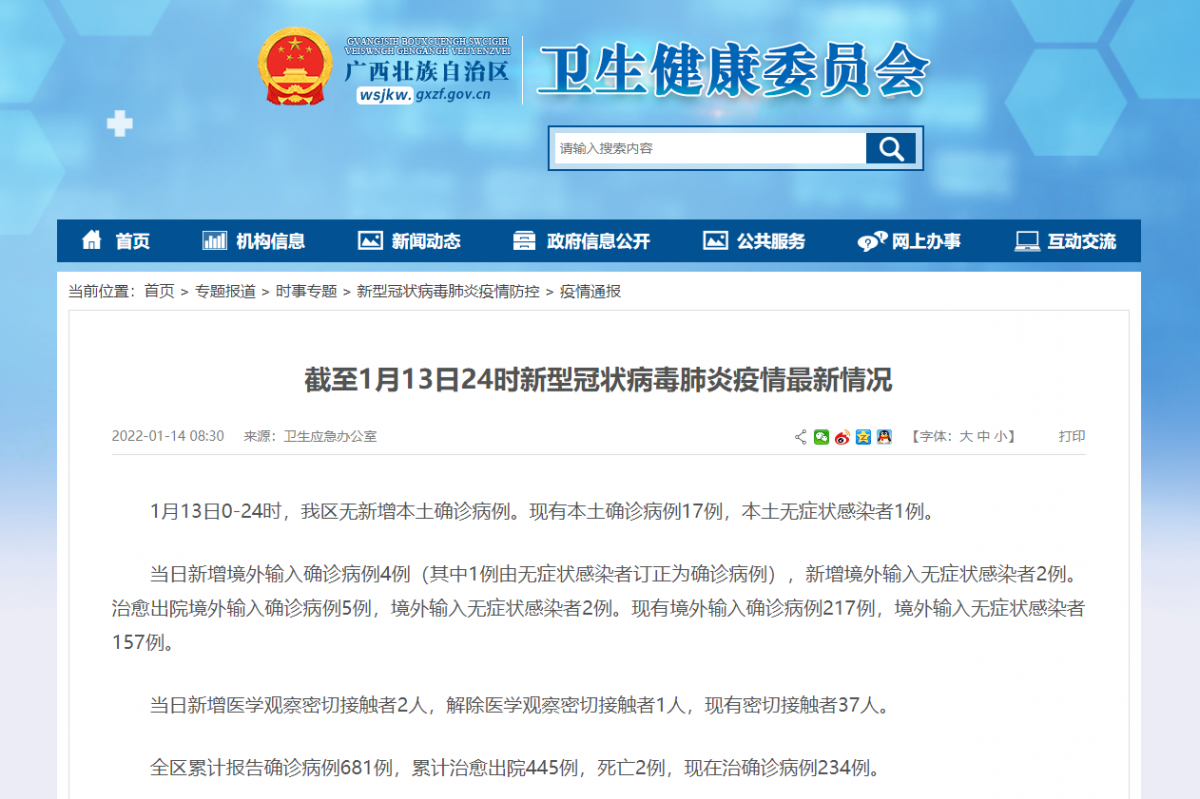 1月13日0-24时,我区无新增本土确诊病例。现有本土确诊病例17例,本土无症状感染者1例。
