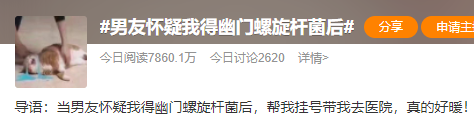 近日,“男友怀疑我得幽门螺旋杆菌”话题冲上热搜