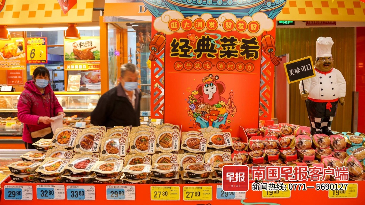 在南宁从事室内装饰工作的曾先生说,今年春节不回家乡四川了,就在南宁和几位朋友一起过年。大家都是年轻人,不太会做菜,便在网上订了10道预制菜,到时热一热就能吃了。