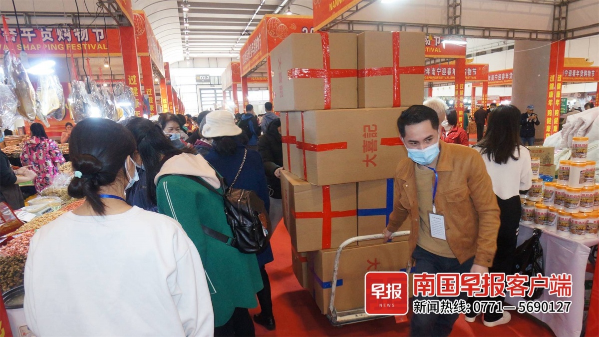 中国人买年货必囤美食,什么美食才能征服广西人的味蕾?南宁国际会展中心正在举办迎春年货购物节,丰富多样的年货吸引了不少市民前往选购。