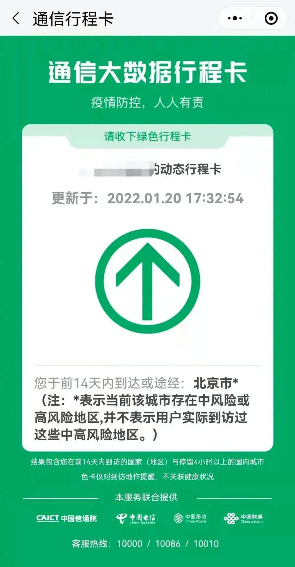 行程卡服务由运营商通过用户所用手机号所处的基站位置获取。