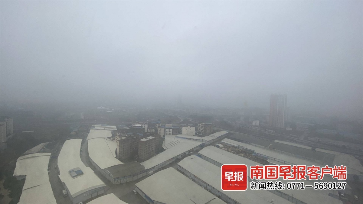 ▲1月22日,南宁被大雾笼罩。南国早报客户端见习记者 尹世斌 摄