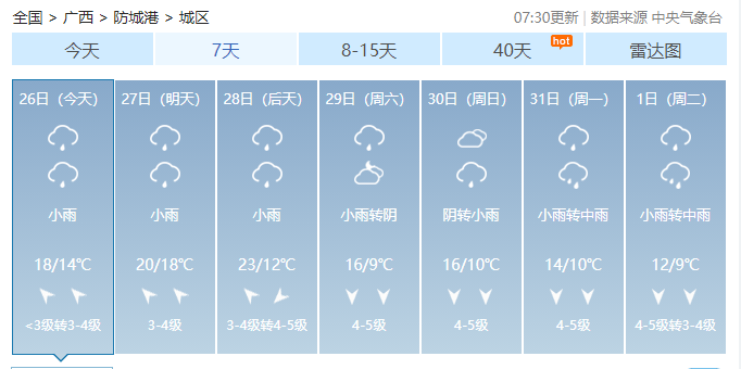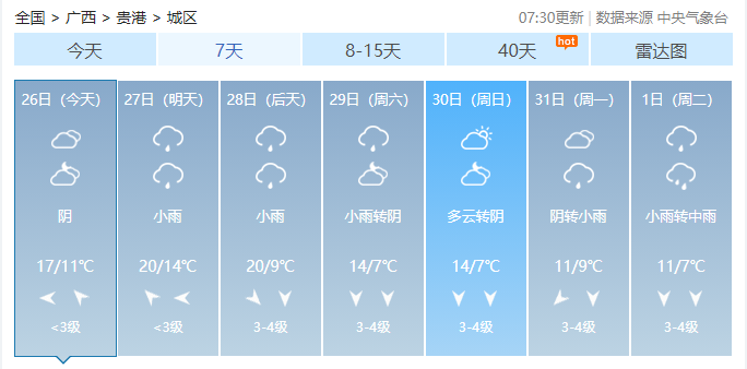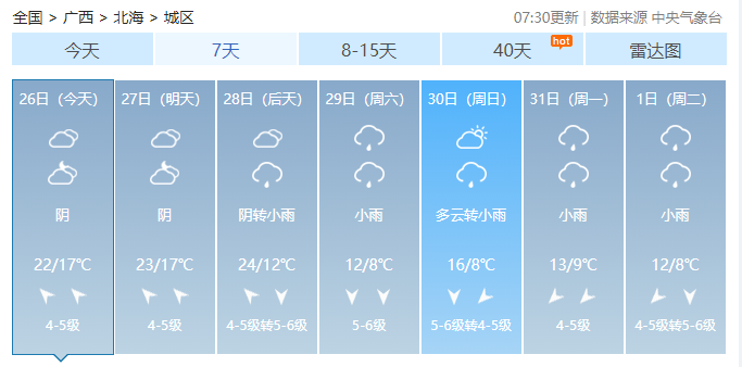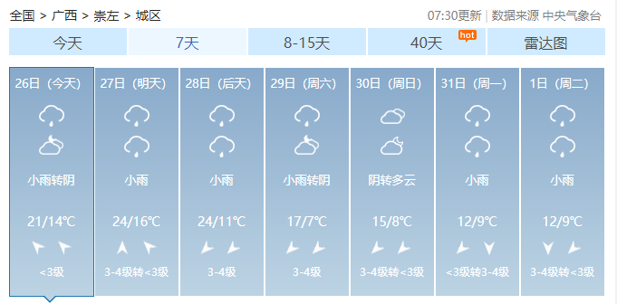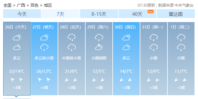 广西14市具体天气预报