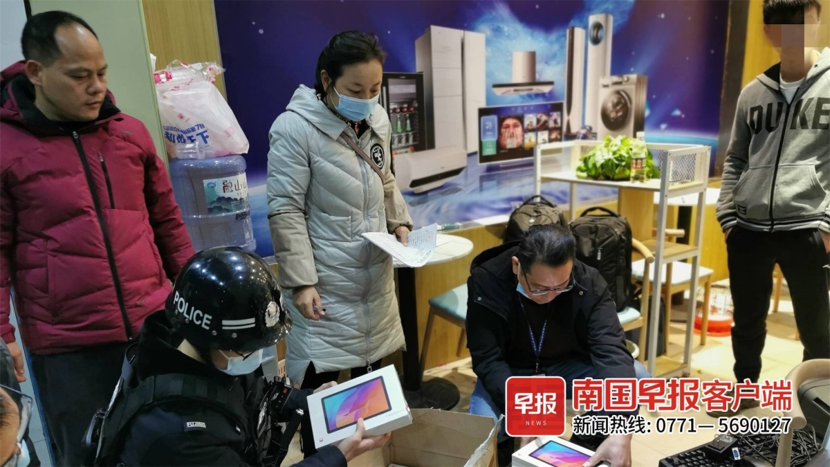 执法人员调查发现,“环球电器”于2022年1月4日注册成立,注册名称为“融安县优能电器经营部”。在经营部内摆放有几台电器,仓库里存放平板电脑、数据线和大量宣传单。门面不大,业务员却异常多,分工也很明确。