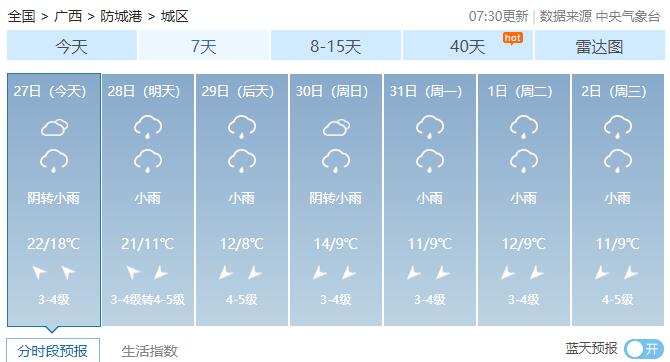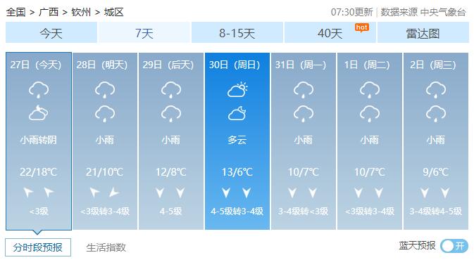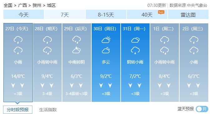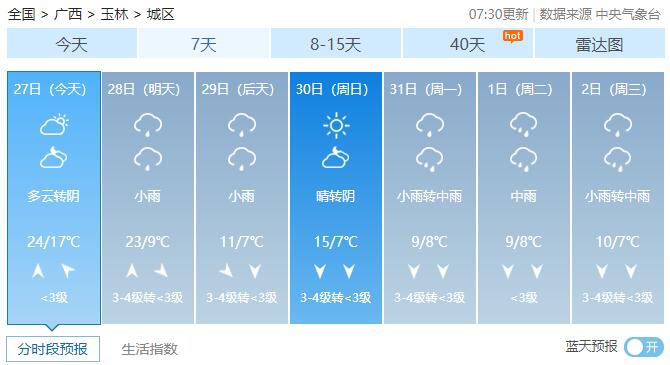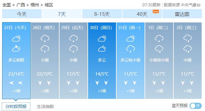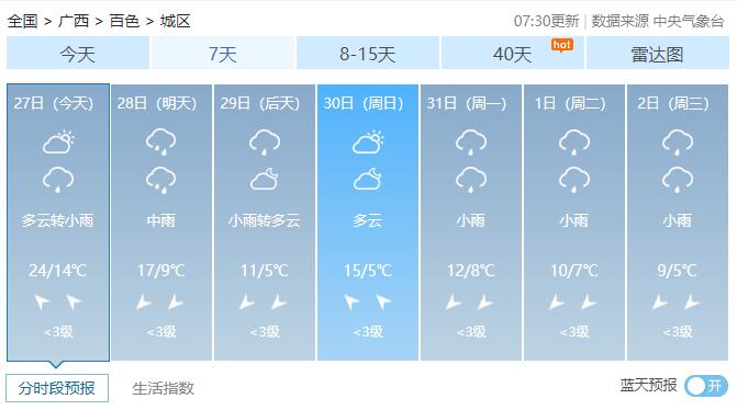 广西14市未来7天具体天气预报