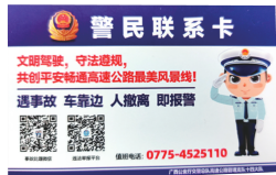 春节已近,不少在外务工人员踏上自驾返乡的旅程。自春运启动以来,G80广昆高速公路玉林往南宁方向车流日渐增多,追尾、变道剐蹭等典型简易交通事故接踵而至。面对警力不足、事故增多、春运交通安全工作任务重的现状,解决群众在事故处理过程中“找民警难”“找办公室难”“事故咨询难”等问题,广西高速公路管理支队十四大队设计制作了一批辖区专属警民联系卡。