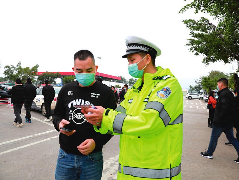 民警向司机朋友派发警民联系卡 (高速交警部门供图)