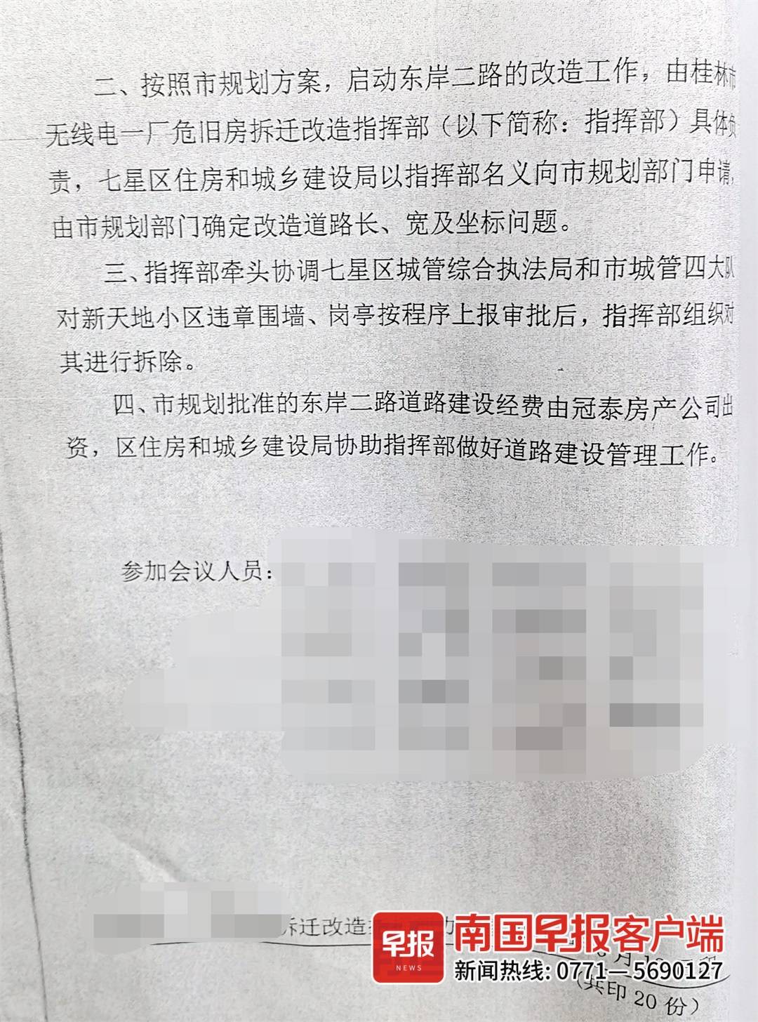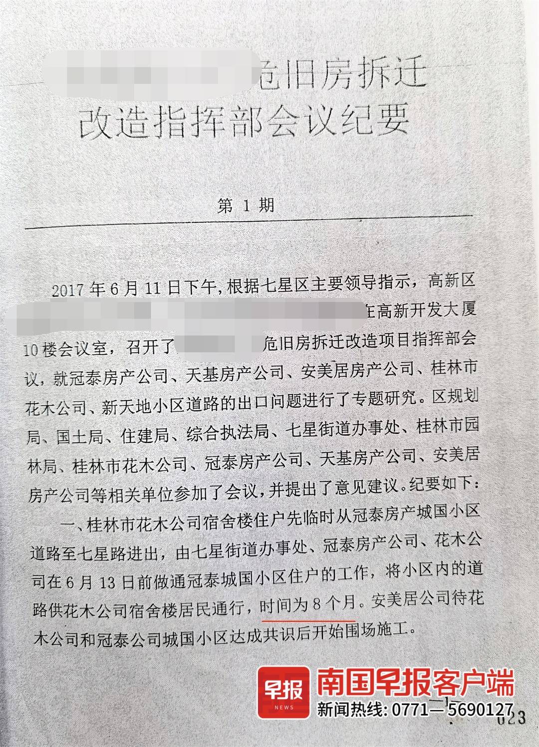 ▲图为桂林市七星区政府组织相关部门和开发商就出口问题进行协调,所形成的会议纪要。