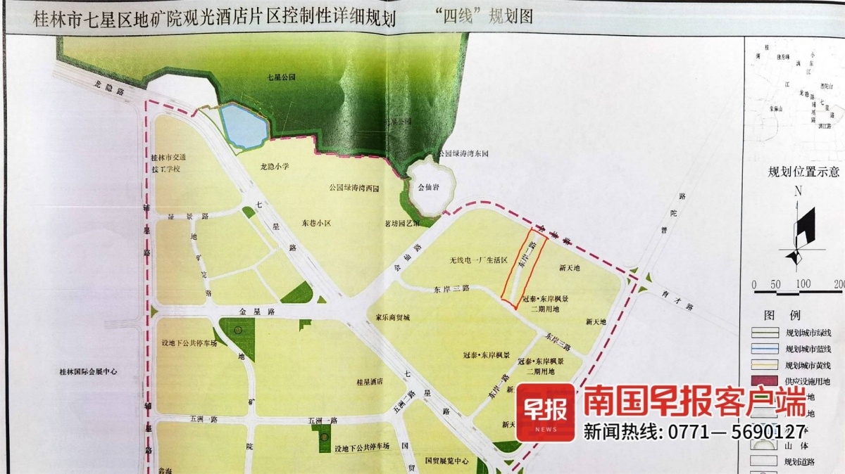 ▲规划图中,花木小区南边有一条东岸二路(图中红线内),但迟迟未开通。
