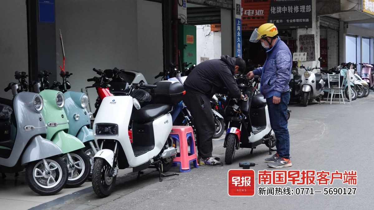 ▲1月28日下午,南宁市铁唐巷,一名市民在此购买电动自行车。