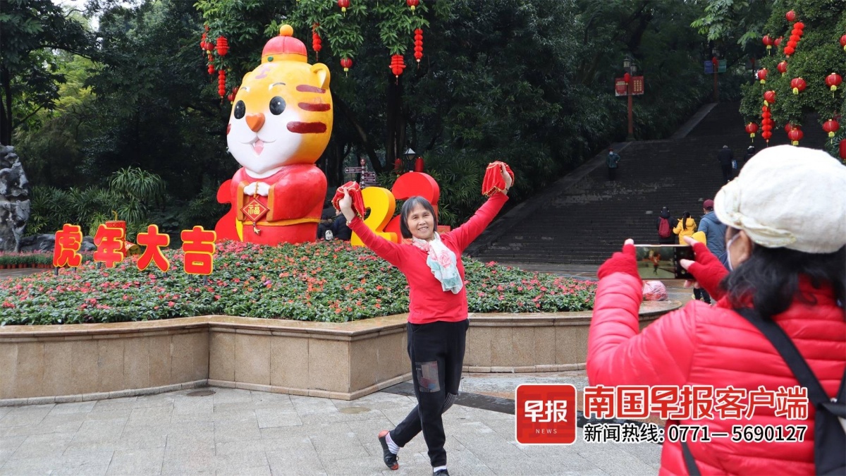 ▲人们在南宁市人民公园内的虎年标志物前拍照留念。南国早报客户端见习记者 黎伊玮 摄