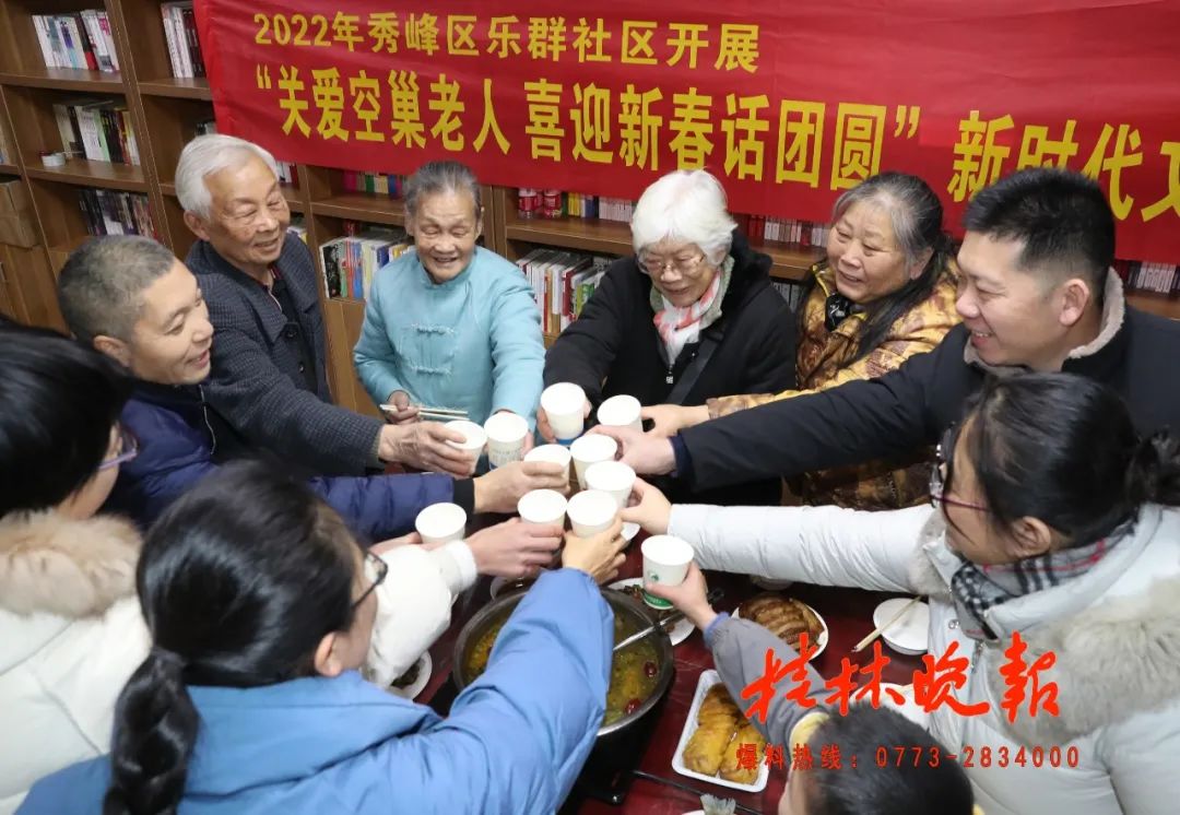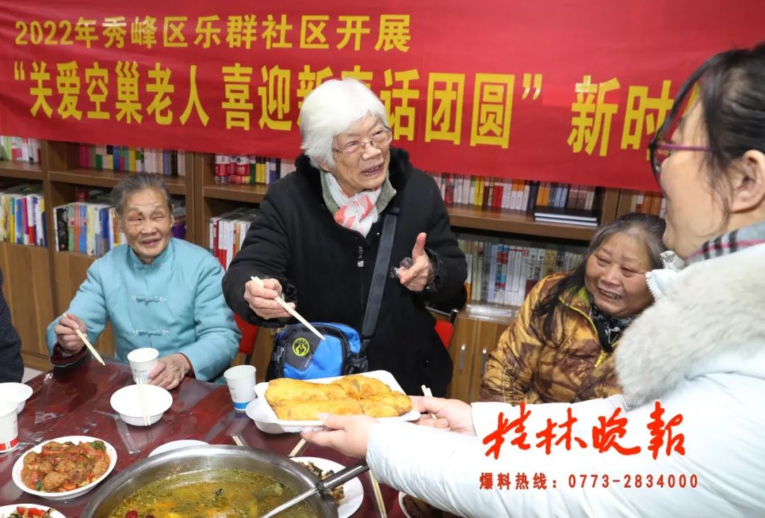 万家团聚时,桂林市秀峰区秀峰街道办事处乐群社区没有忘记社区里的空巢老人们,邀请他们开展了“关爱空巢老人喜迎新春话团圆”活动。社区干部一早就到市场采购食材,为社区的空巢老人准备香喷喷的年夜饭。中午,社区干部与老人们打着边炉话家常,欢声笑语不断。
