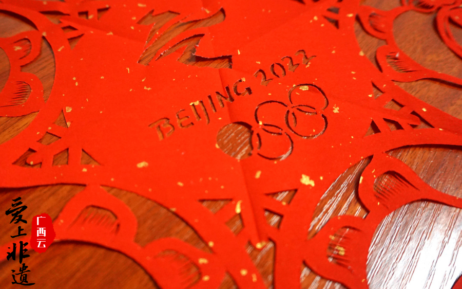 钟昀睿指间流转下的南宁剪纸除了展现壮乡生活风光,讲述壮乡民俗故事,还与时俱进地裁画出南宁城市地标建筑、各项重大活动如冬奥会等,甚至在三维领域上不断探索剪纸新样态,通过更新颖多变的方式展现南宁剪纸风采。