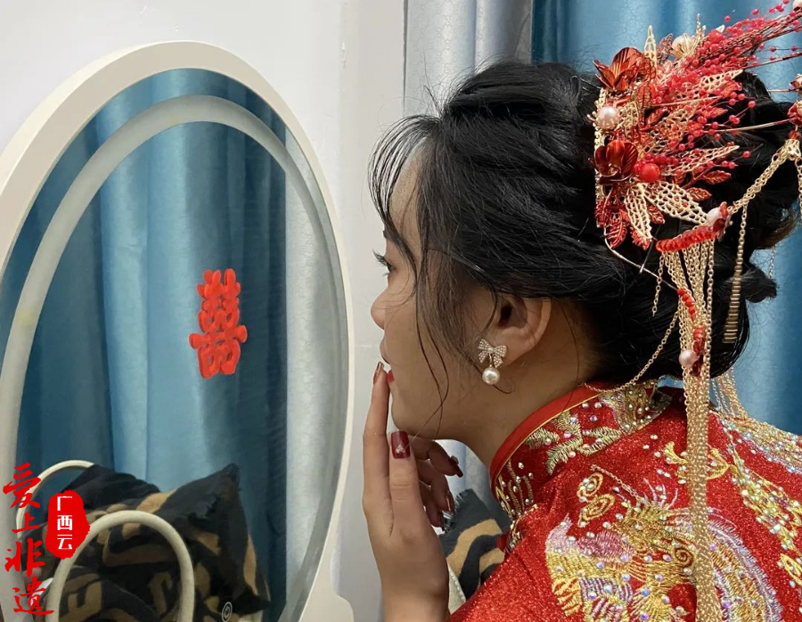 走进南宁剪纸技艺代表性传承人钟昀睿的工作室——南宁市壮彩剪纸,错落有致地摆挂着许多火红喜庆、妙趣横生的剪纸作品:有憨态可掬的“萌”虎送福,笑意盈盈载歌载舞的壮族阿哥阿妹,风景壮丽的广西山水一览……红纸白墙,十分亮眼。