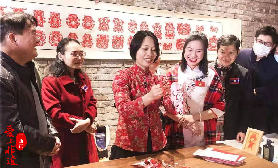 现如今,走出广西、走向国际的南宁剪纸还成为了惟妙惟肖的文化符号,面向外国友人,在一折一剪钟展示传播着南宁壮乡民族璀璨的文化生活。