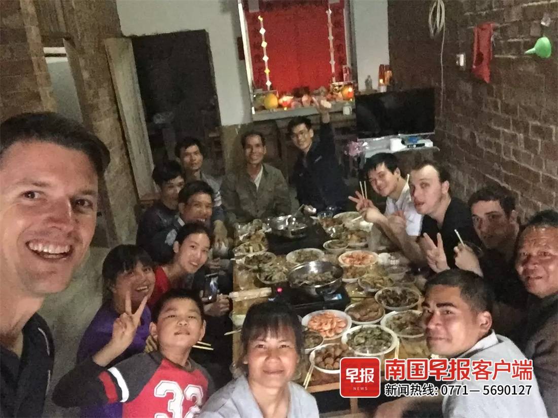 他曾在大年初三,去到贵港市一位学生家,并在朋友圈中称这是“大家族式”春节,院子里摆满了桌子,大家聚在一起吃饭,其乐融融。他也曾在春节期间受邀到田东的学生家,体验了当地春节的习俗,还跟学生一家拍了全家福。