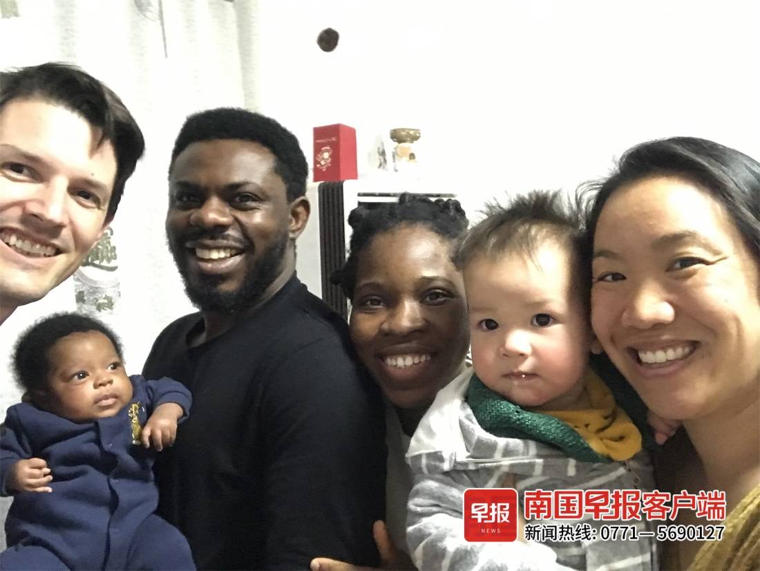 ▲今年除夕,林子阳(左一)一家拜访了留邕的非洲朋友。