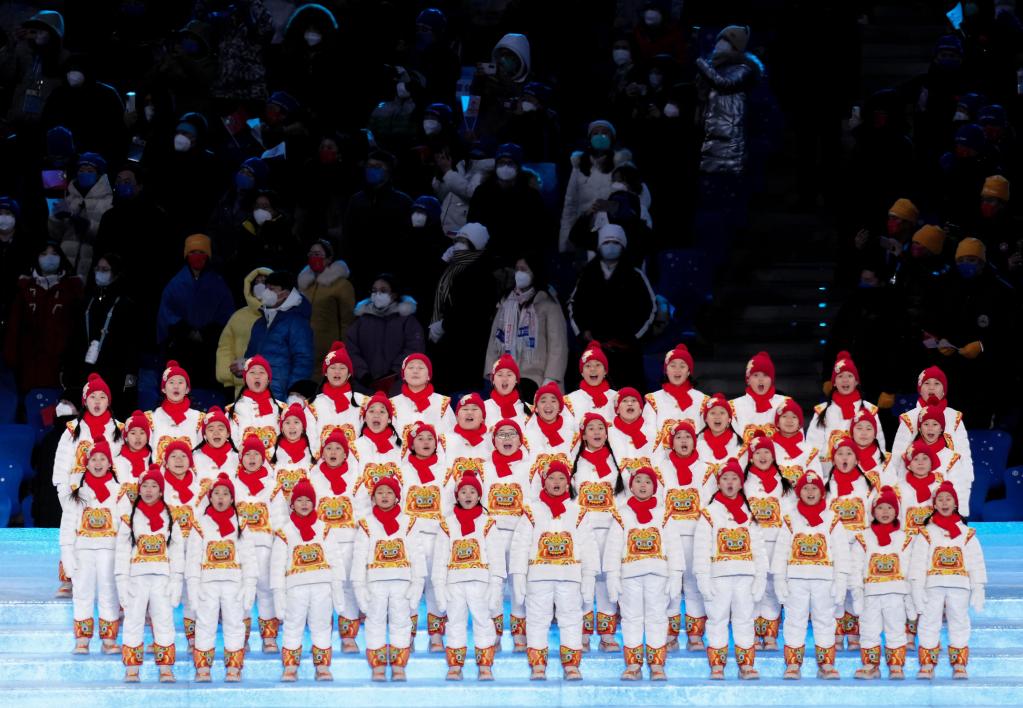 2月4日晚,第二十四届冬季奥林匹克运动会开幕式在北京国家体育场举行。图为孩子们演唱奥林匹克会歌。新华社记者 李安 摄