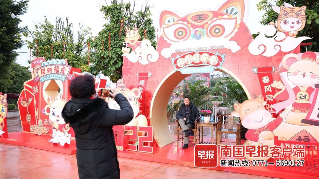 2月4日,大年初四,南宁天气晴好,市民纷纷到市内各大景区踏春游玩,而各景区内的虎元素则成了人们打卡的热门。