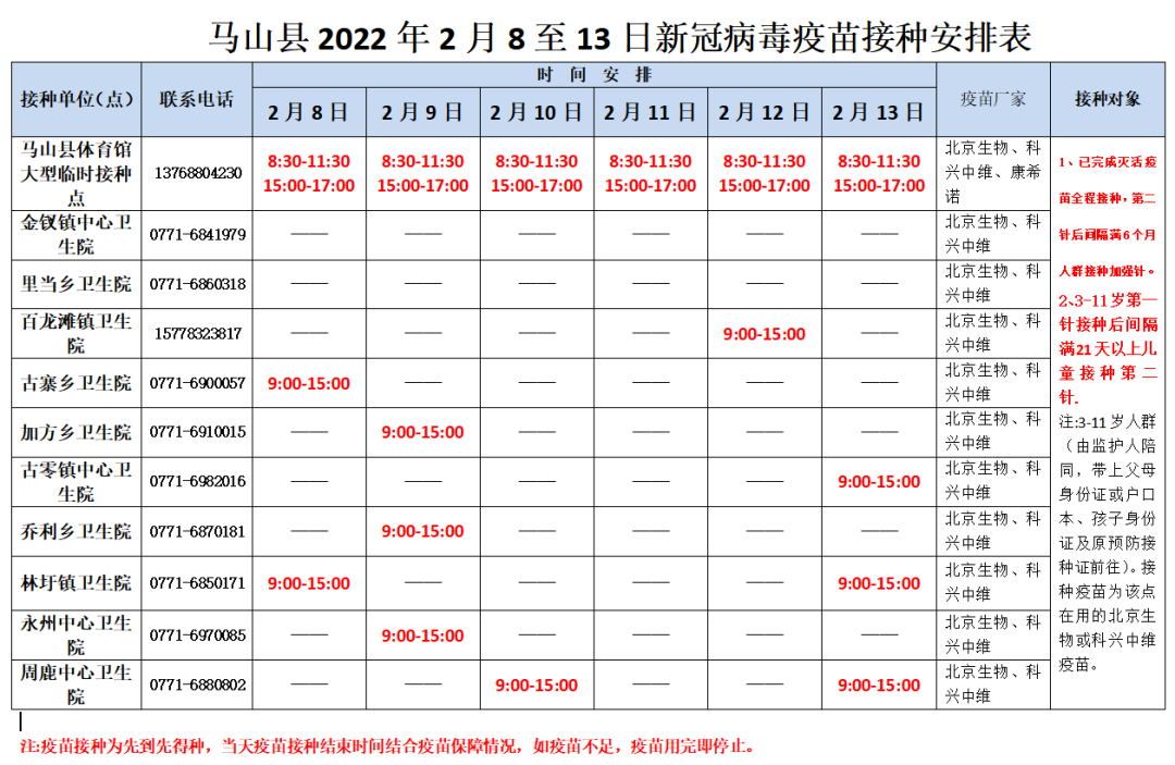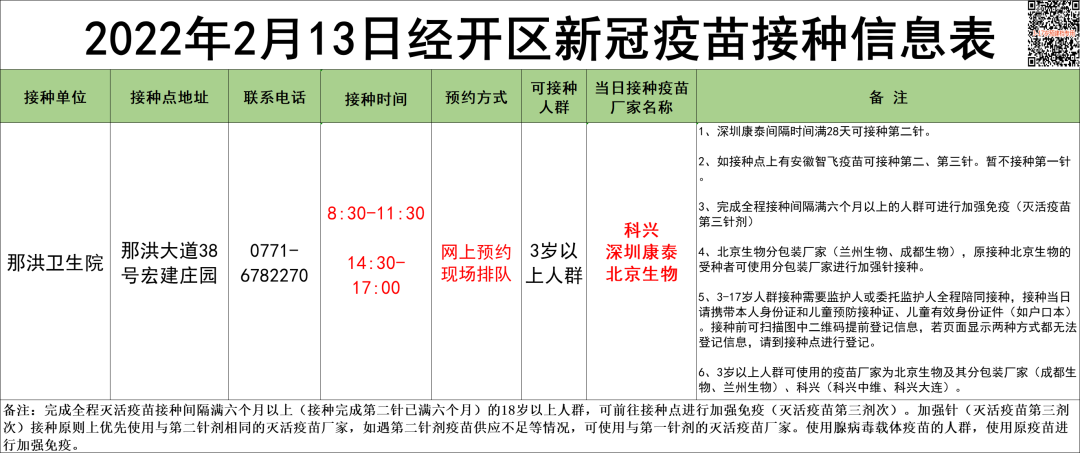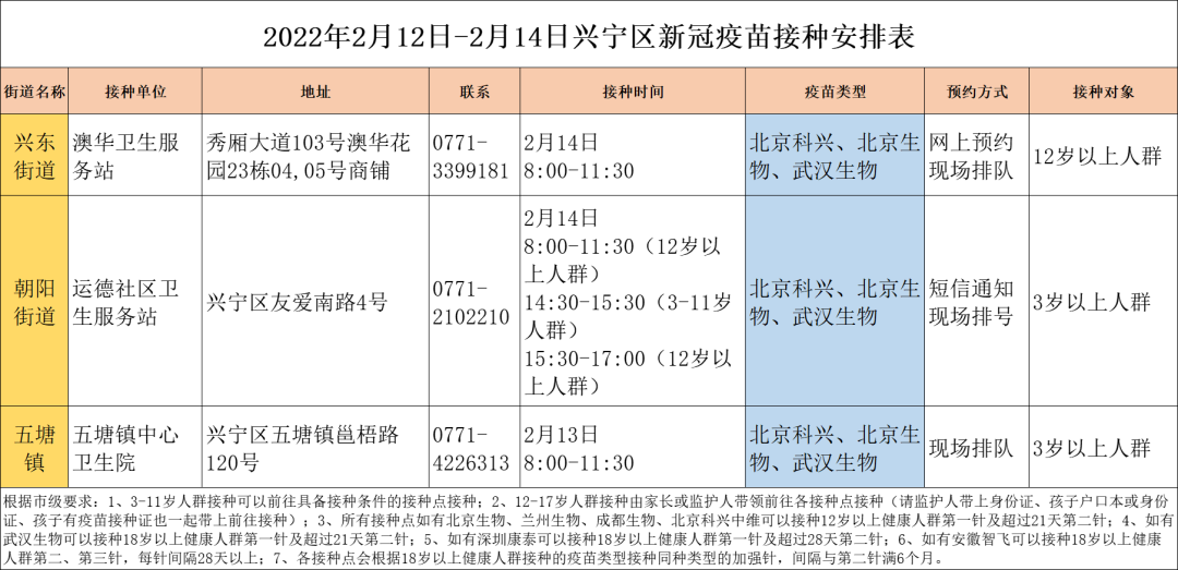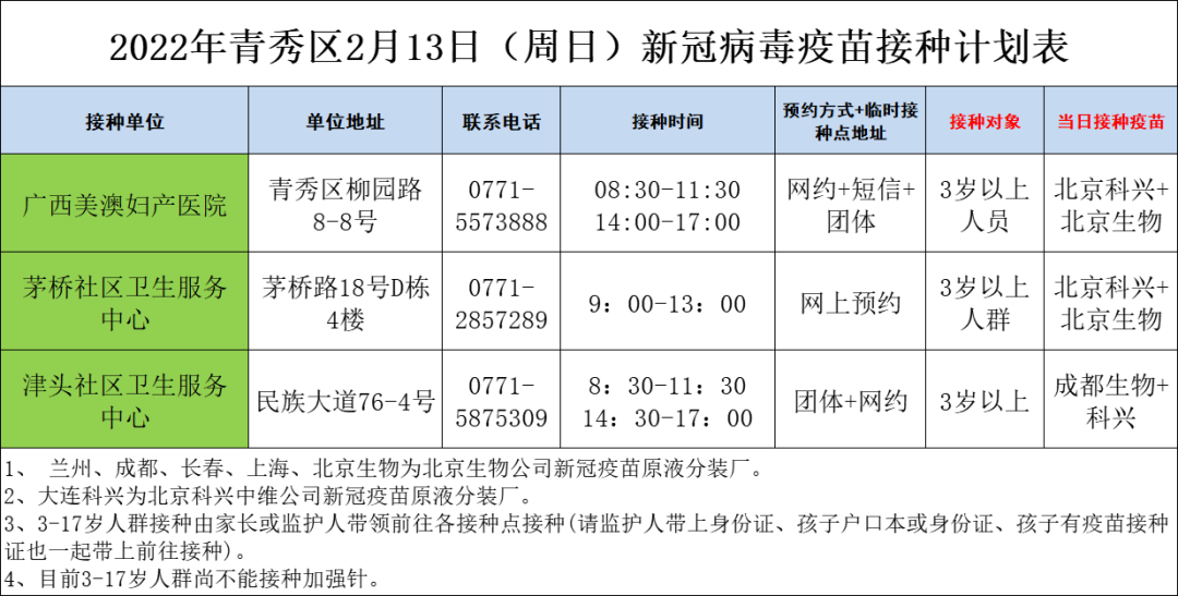 最新!2月13日南宁市各城区、县区疫苗接种安排→