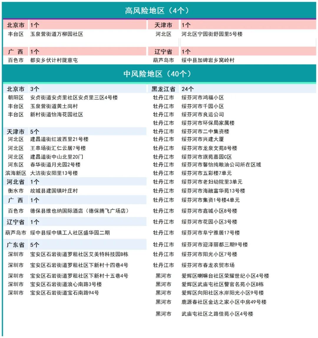 全国疫情中高风险地区名单