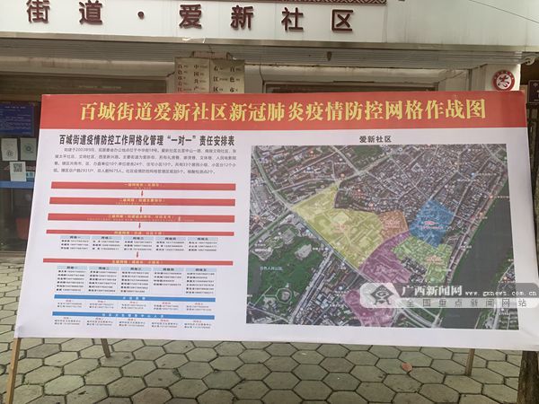 百城街道爱新社区疫情防控网格作战图。广西新闻网记者 李冠宏 摄