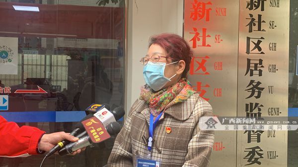 百色市右江区百城街道爱新社区党总支部书记、居委会主任郑毓兰正在接受采访。广西新闻网记者 李冠宏 摄
