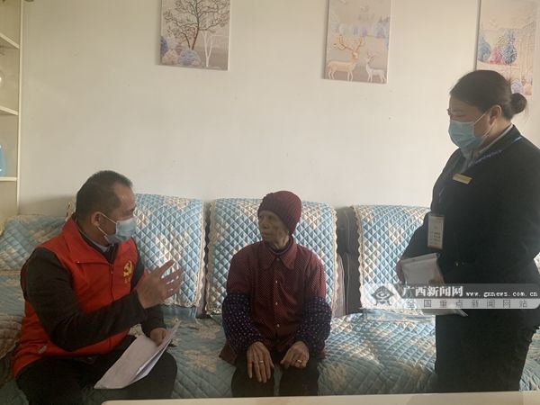 正在询问韦阿婆的核酸检测情况。广西新闻网记者 李冠宏 摄