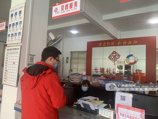 市民正在七塘社区的党群服务窗口咨询事务。广西新闻网记者 李冠宏 摄