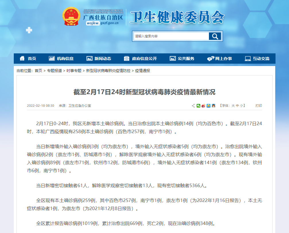 2月17日广西无新增本土确诊病例 新增境外输入确诊病例3例