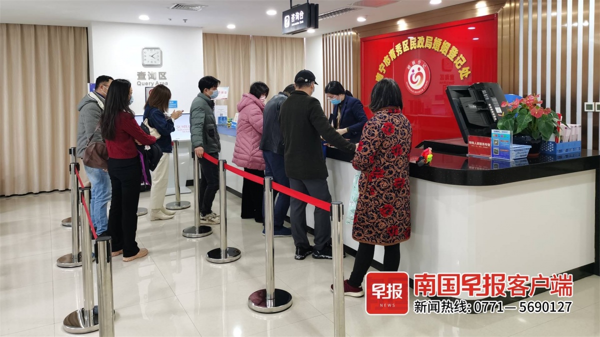 ▲2月16日,南宁青秀区婚姻登记处,前来咨询和办理业务的市民络绎不绝。南国早报客户端见习记者 尹世斌 摄