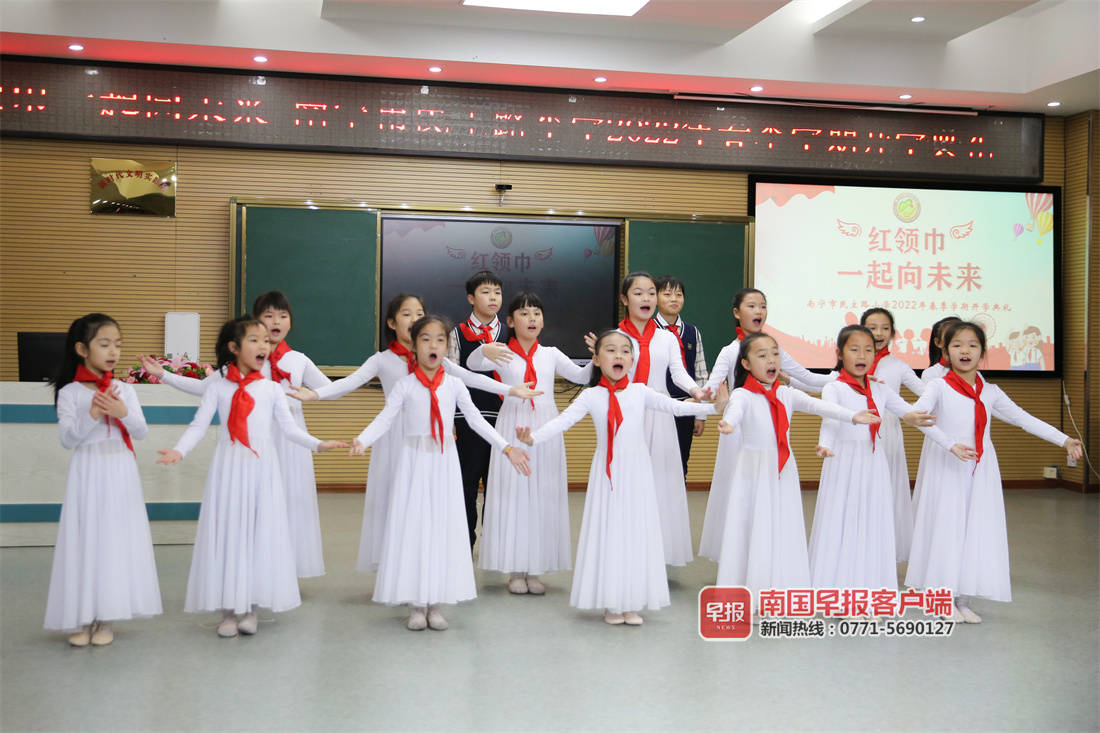 南宁市民主路小学引导孩子们将目标定得更长远,该校开学典礼以“红领巾一起向未来”为主题,为实现“到2035年基本实现社会主义现代化”的远景目标,该校号召少先队员相约2035,学生代表们展示了篮球、足球、啦啦操、声乐、舞蹈等才艺,并说出自己到2035年的规划。